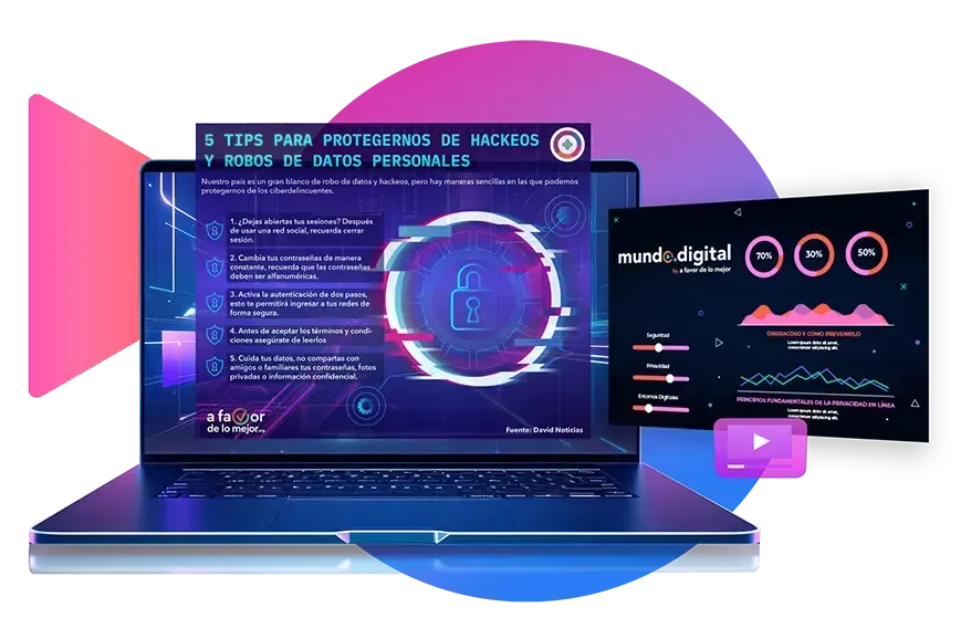En esta sección podrás encontrarinfografías que simplifican retos complejos, guías descargables para activar hábitos de privacidad y cápsulas en video diseñadas para fortalecer tu criterio digital.